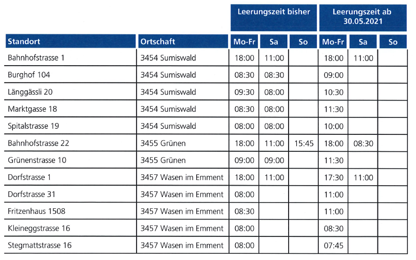 Die Post - neue Leerungszeiten Briefeinwürfe ab 30.5.2021
